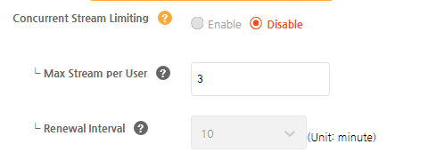Section titled “Trial account”To test the CSL function during the trial period before switching to a commercial plan, set the Concurrent Stream Limiting