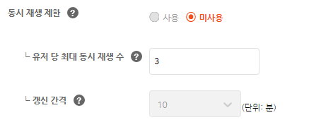 : 최종 사용자 계정 당 동시에 재생할 수 있는 스트리밍의 수가 해당 값 이하로 제한됩니다. (기본값 3) -